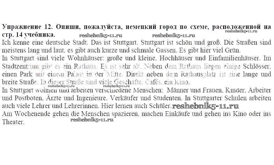 Немецкий язык за 6 класс Бим Рабочая тетрадь Просвещение здравствуй, школа (упражнение) 12