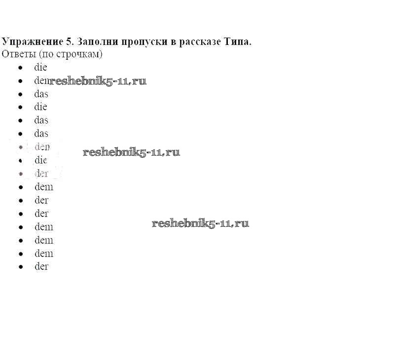 Готовая домашняя работа с ответами по Немецкому языку за 6 класс Бим, Фомичева Рабочая тетрадь Просвещение 2008 ФГОС - Грамматика 5