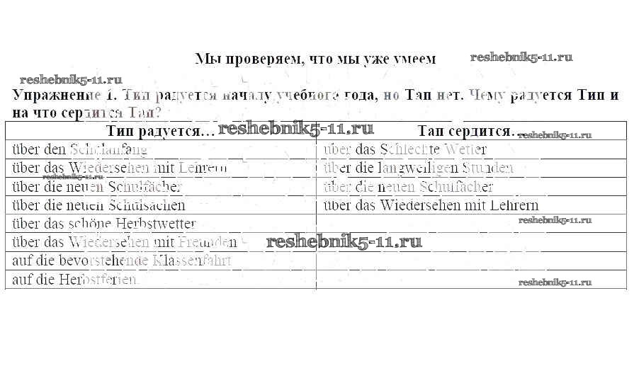 Готовая домашняя работа с ответами по Немецкому языку за 6 класс Бим, Фомичева Рабочая тетрадь Просвещение 2008 ФГОС - Мы проверяем, что мы уже умеем 1
