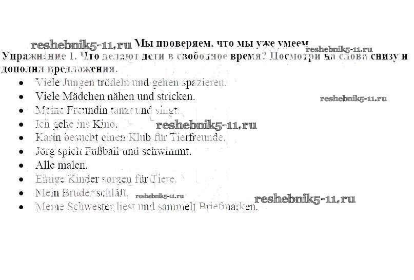 Готовая домашняя работа с ответами по Немецкому языку за 6 класс Бим, Фомичева Рабочая тетрадь Просвещение 2008 ФГОС - Мы проверяем, что мы уже умеем 1