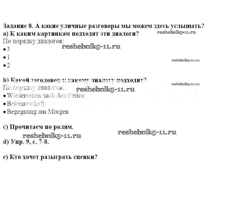Готовая домашняя работа с ответами по Немецкому языку за 6 класс Бим, Садомова, Санникова Учебник Часть 1, 2 Просвещение 2014 ФГОС - Введение (Задания) 8