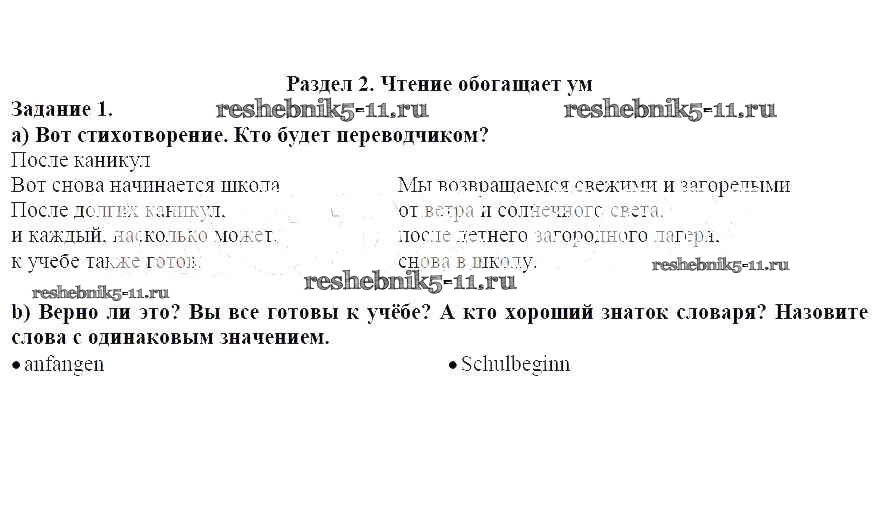 Немецкий язык за 6 класс Бим Учебник Просвещение раздел 2 1