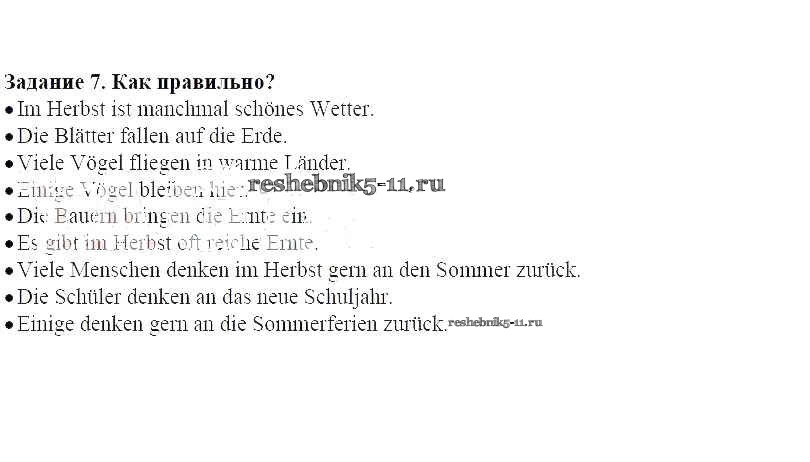 Готовая домашняя работа с ответами по Немецкому языку за 6 класс Бим, Садомова, Санникова Учебник Часть 1, 2 Просвещение 2014 ФГОС - Раздел 1 7