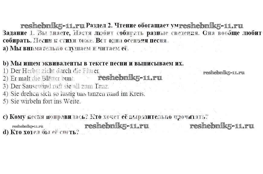 Готовая домашняя работа с ответами по Немецкому языку за 6 класс Бим, Садомова, Санникова Учебник Часть 1, 2 Просвещение 2014 ФГОС - Раздел 2 1