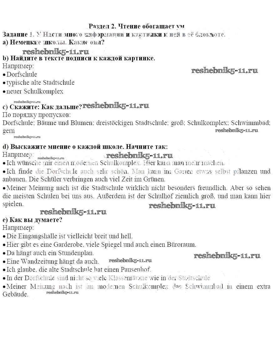 Готовая домашняя работа с ответами по Немецкому языку за 6 класс Бим, Садомова, Санникова Учебник Часть 1, 2 Просвещение 2014 ФГОС - Раздел 2 1