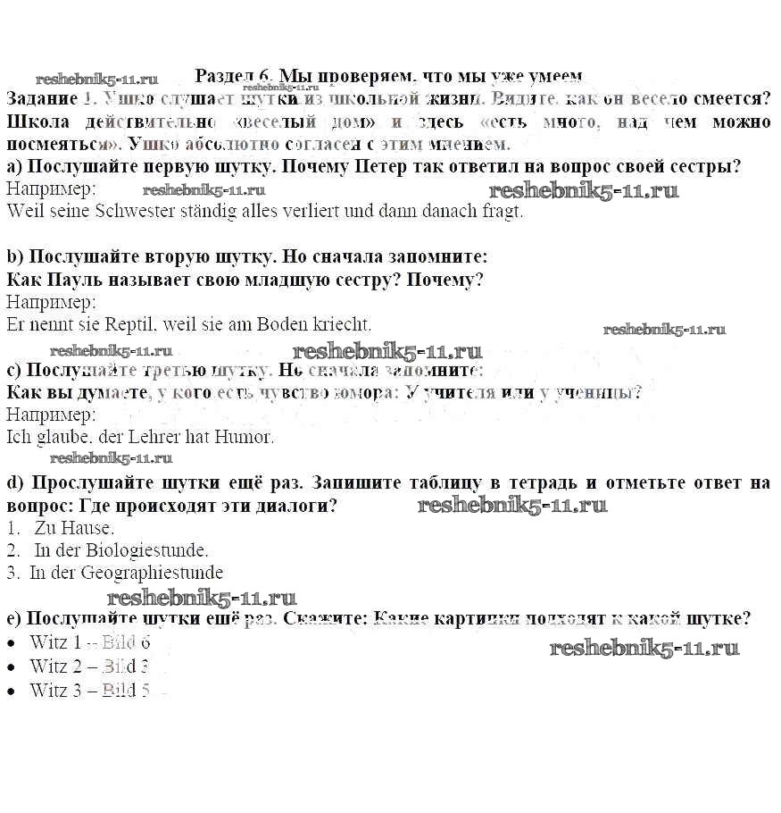 Готовая домашняя работа с ответами по Немецкому языку за 6 класс Бим, Садомова, Санникова Учебник Часть 1, 2 Просвещение 2014 ФГОС - Раздел 6 1