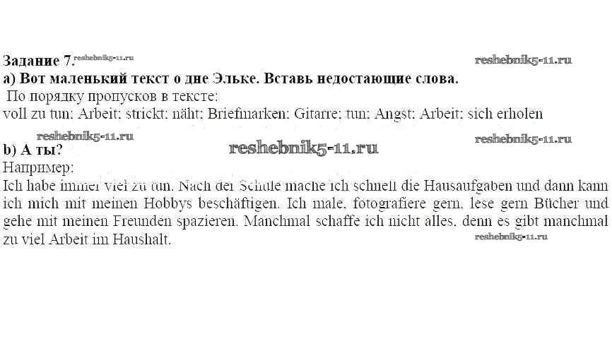 Готовая домашняя работа с ответами по Немецкому языку за 6 класс Бим, Садомова, Санникова Учебник Часть 1, 2 Просвещение 2014 ФГОС - Раздел 1 7