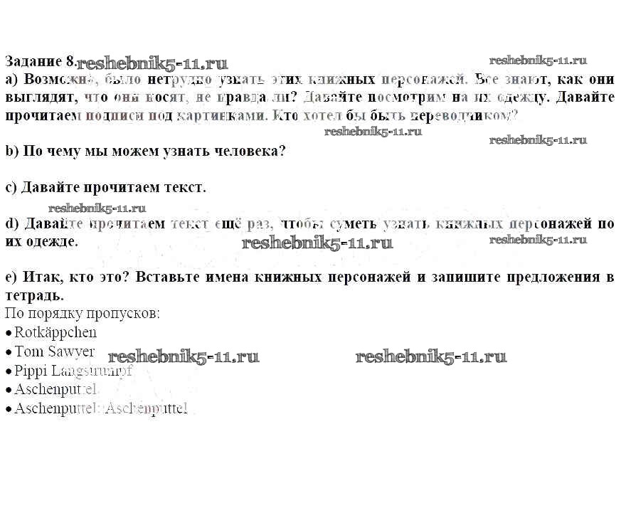 Готовая домашняя работа с ответами по Немецкому языку за 6 класс Бим, Садомова, Санникова Учебник Часть 1, 2 Просвещение 2014 ФГОС - Раздел 1 8
