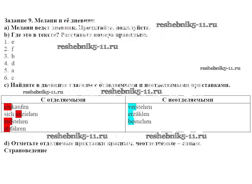 Готовая домашняя работа с ответами по Немецкому языку за 6 класс Радченко, Конго, Зайферт Учебник Wunderkinder Часть Просвещение 2014 ФГОС - Глава 1 (Задания) 9