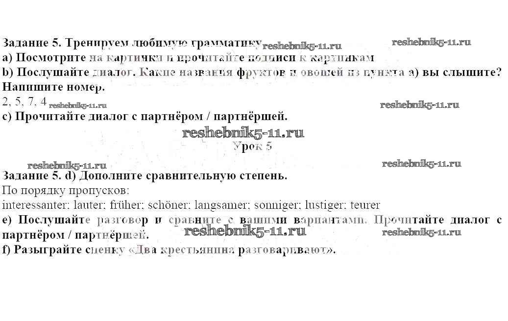 Готовая домашняя работа с ответами по Немецкому языку за 6 класс Радченко, Конго, Зайферт Учебник Wunderkinder Часть Просвещение 2014 ФГОС - Глава 2 (Задания) 5