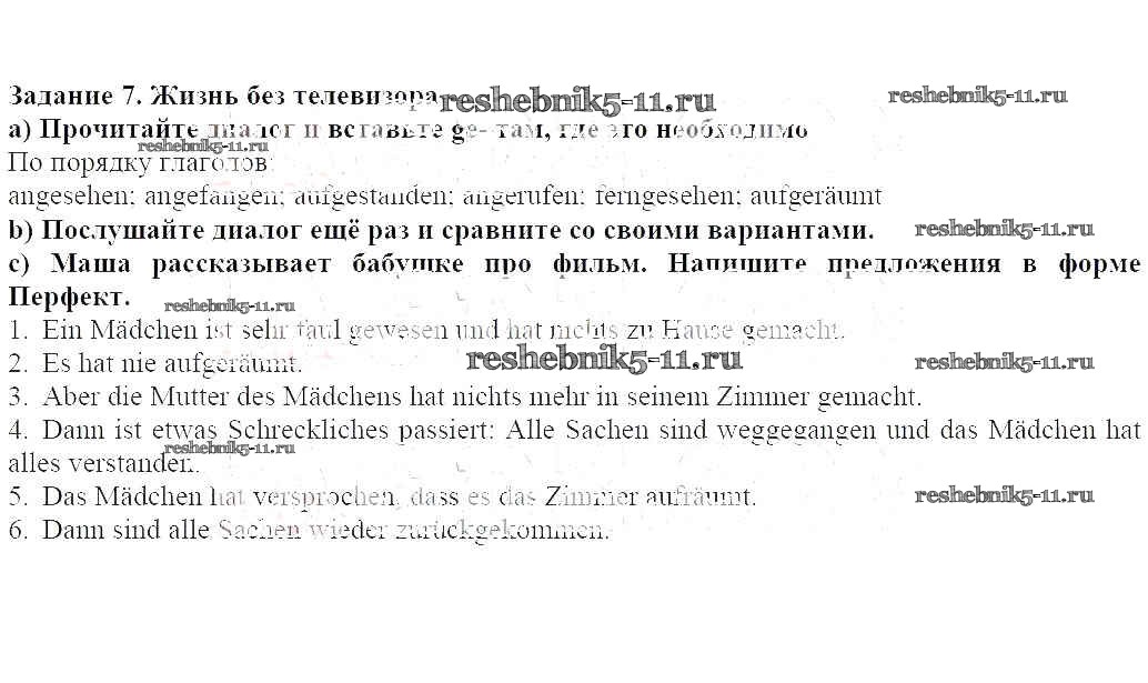 Готовая домашняя работа с ответами по Немецкому языку за 6 класс Радченко, Конго, Зайферт Учебник Wunderkinder Часть Просвещение 2014 ФГОС - Глава 3 (Задания) 7