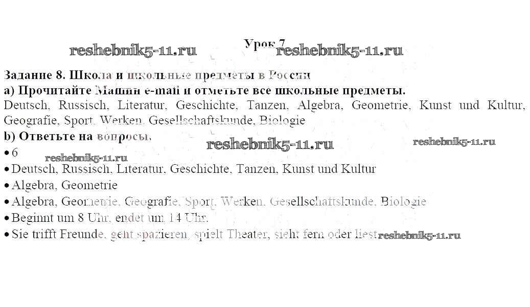 Готовая домашняя работа с ответами по Немецкому языку за 6 класс Радченко, Конго, Зайферт Учебник Wunderkinder Часть Просвещение 2014 ФГОС - Глава 3 (Задания) 8