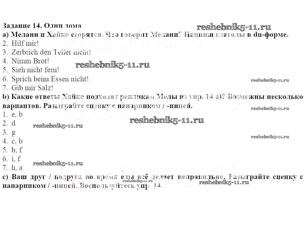 Готовая домашняя работа с ответами по Немецкому языку за 6 класс Радченко, Конго, Зайферт Учебник Wunderkinder Часть Просвещение 2014 ФГОС - Глава 5 (Задания) 14