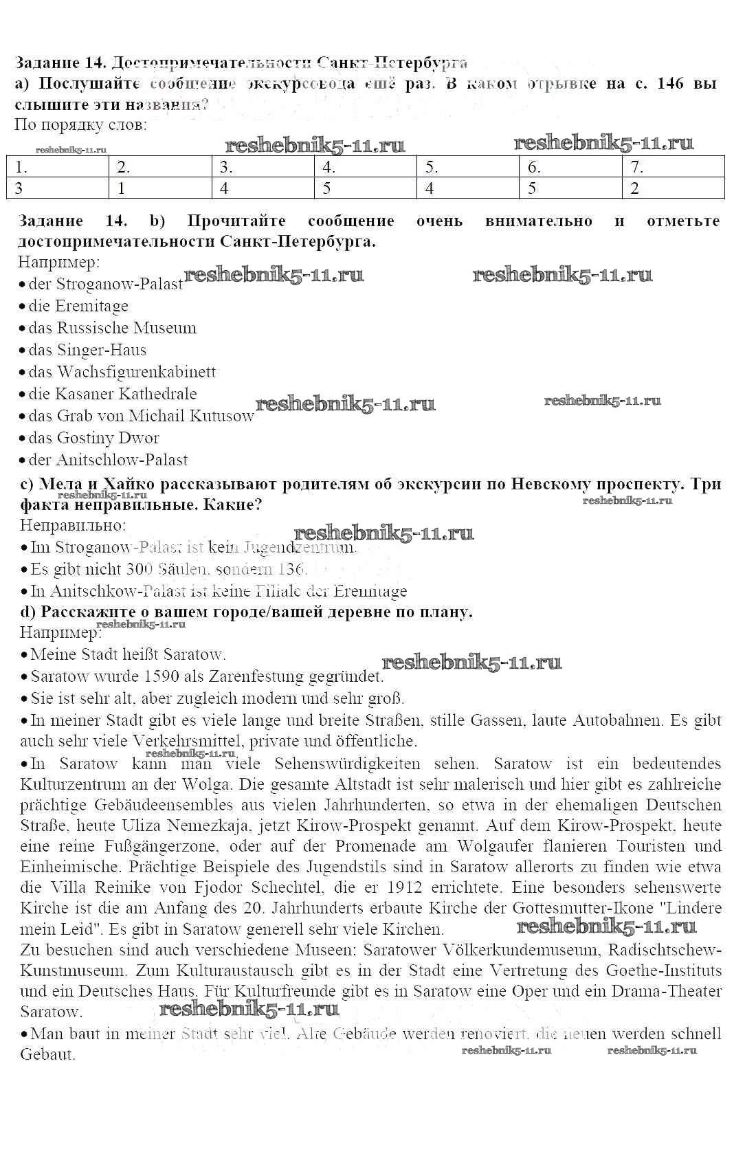 Готовая домашняя работа с ответами по Немецкому языку за 6 класс Радченко, Конго, Зайферт Учебник Wunderkinder Часть Просвещение 2014 ФГОС - Глава 6 (Задания) 14
