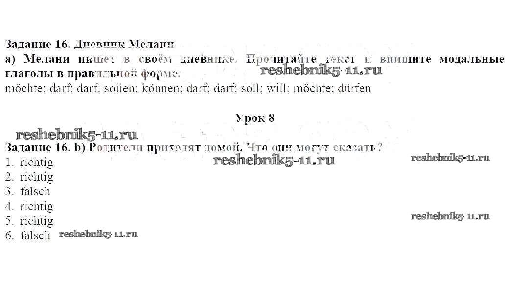 Готовая домашняя работа с ответами по Немецкому языку за 6 класс Радченко, Конго, Зайферт Учебник Wunderkinder Часть Просвещение 2014 ФГОС - Глава 7 (Задания) 16