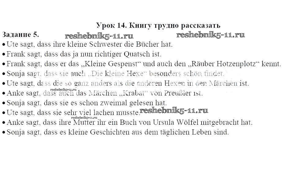 Готовая домашняя работа с ответами по Немецкому языку за 6 класс Радченко, Хебелер Учебник Alles Klar! Дрофа 2014 - Урок 14 5