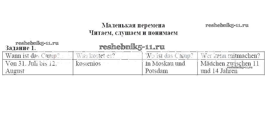 Готовая домашняя работа с ответами по Немецкому языку за 6 класс Аверин, Джин, Рорман Рабочая тетрадь Horizonte Просвещение 2016 ФГОС - Маленькая перемена 1