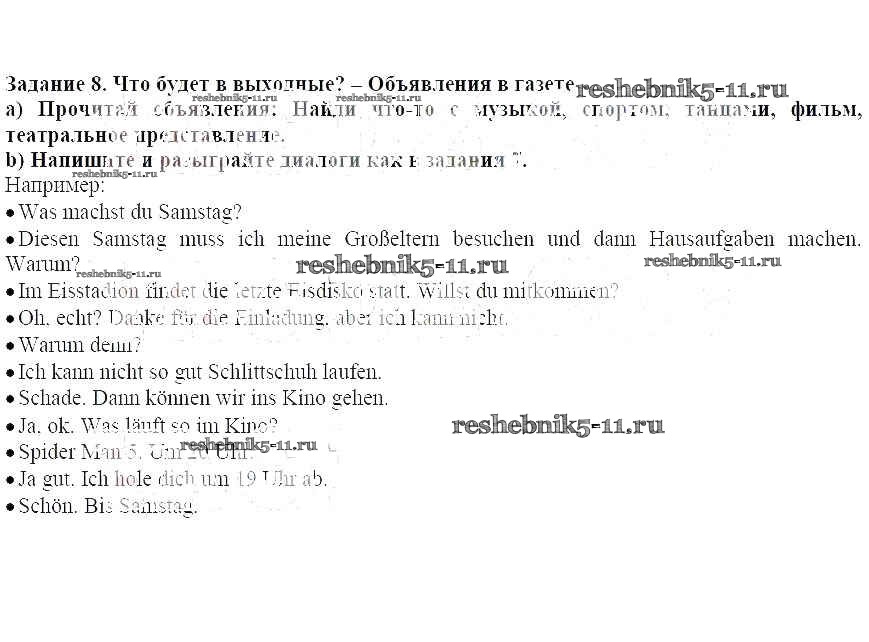 Готовая домашняя работа с ответами по Немецкому языку за 6 класс Аверин, Джин, Рорман Учебник Horizonte Просвещение 2016 ФГОС - Глава 3 8