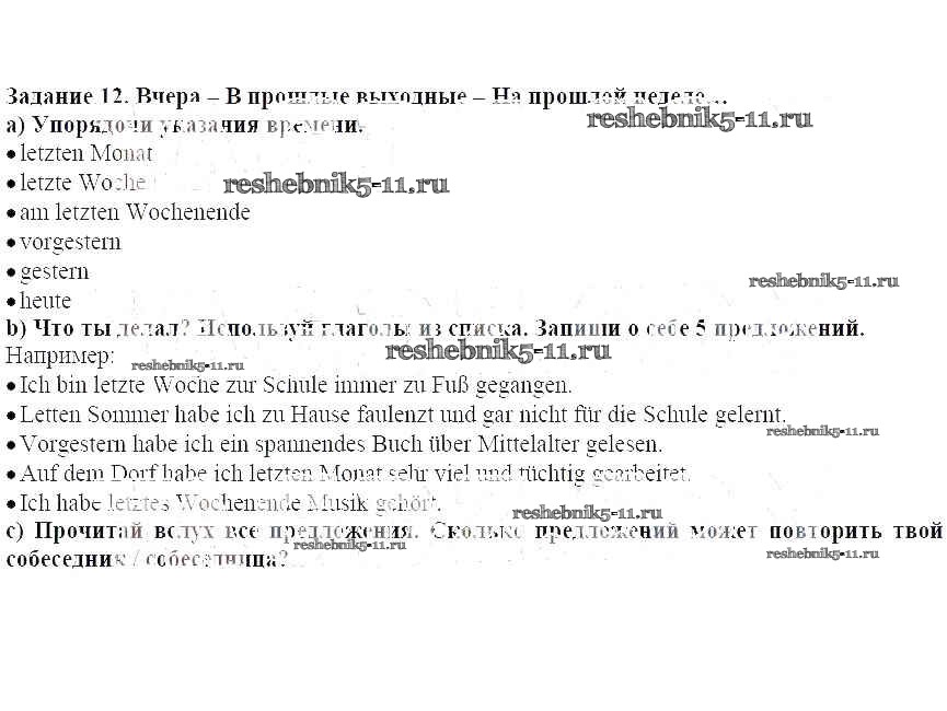 Готовая домашняя работа с ответами по Немецкому языку за 6 класс Аверин, Джин, Рорман Учебник Horizonte Просвещение 2016 ФГОС - Глава 7 12