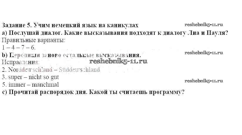 Готовая домашняя работа с ответами по Немецкому языку за 6 класс Аверин, Джин, Рорман Учебник Horizonte Просвещение 2016 ФГОС - Глава 7 5