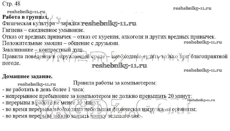 Готовая домашняя работа с ответами по ОБЖ за 5, 6 класс Виноградова, Смирнов, Сидоренко Учебник Вентана-граф 2020 ФГОС - Страницы 48