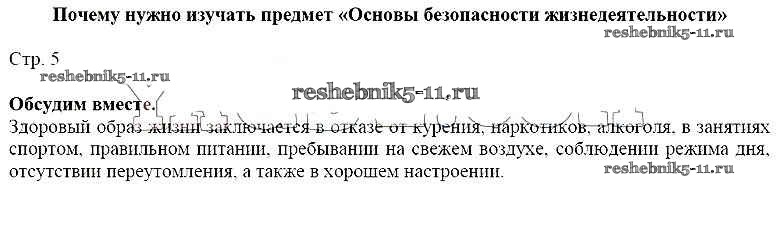 Готовая домашняя работа с ответами по ОБЖ за 5, 6 класс Виноградова, Смирнов, Сидоренко Учебник Вентана-граф 2020 ФГОС - Страницы 5