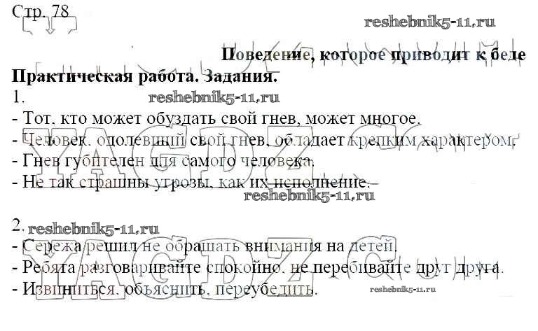 Готовая домашняя работа с ответами по ОБЖ за 5, 6 класс Виноградова, Смирнов, Сидоренко Учебник Вентана-граф 2020 ФГОС - Страницы 78
