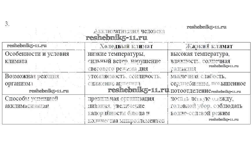 Готовая домашняя работа с ответами по ОБЖ за 6 класс Егорова Рабочая тетрадь Лицей 2012 ФГОС - 11. Акклиматизация человека в различных климатических условиях 3