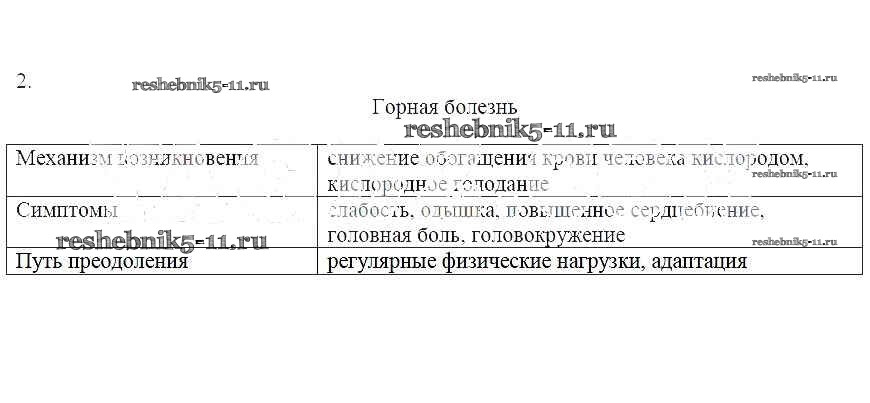 Готовая домашняя работа с ответами по ОБЖ за 6 класс Егорова Рабочая тетрадь Лицей 2012 ФГОС - 12. Акклиматизация человека в горной местности 2