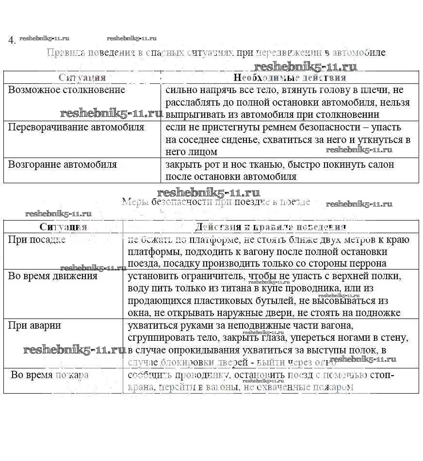Готовая домашняя работа с ответами по ОБЖ за 6 класс Егорова Рабочая тетрадь Лицей 2012 ФГОС - 13. Обеспечение личной безопасности на транспорте. Наземный транспорт 4