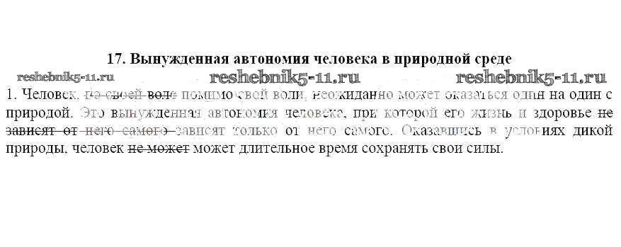 Готовая домашняя работа с ответами по ОБЖ за 6 класс Егорова Рабочая тетрадь Лицей 2012 ФГОС - 17. Вынужденная автономия человека в природной среде 1