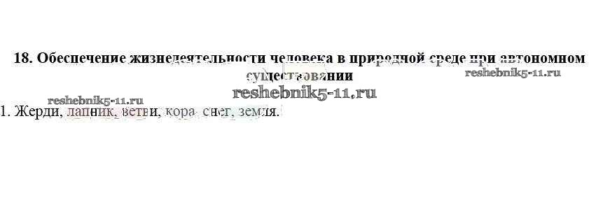 Готовая домашняя работа с ответами по ОБЖ за 6 класс Егорова Рабочая тетрадь Лицей 2012 ФГОС - 18. Обеспечение жизнедеятельности человека в природной среде при автономном существовании 1