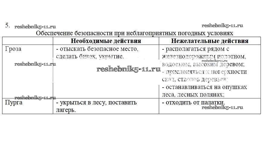 Готовая домашняя работа с ответами по ОБЖ за 6 класс Егорова Рабочая тетрадь Лицей 2012 ФГОС - 19. Опасные погодные явления 5