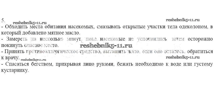 Готовая домашняя работа с ответами по ОБЖ за 6 класс Егорова Рабочая тетрадь Лицей 2012 ФГОС - 21. Укусы насекомых и защита от них 5