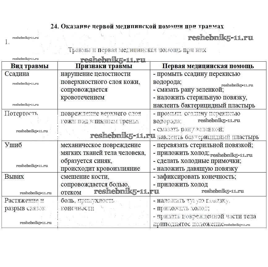 Готовая домашняя работа с ответами по ОБЖ за 6 класс Егорова Рабочая тетрадь Лицей 2012 ФГОС - 24. Оказание первой медицинской помощи при травмах 1