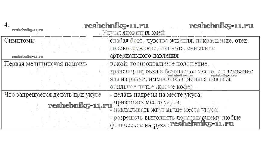 Готовая домашняя работа с ответами по ОБЖ за 6 класс Егорова Рабочая тетрадь Лицей 2012 ФГОС - 26. Оказание первой медицинской помощи при укусах змей и насекомых 4