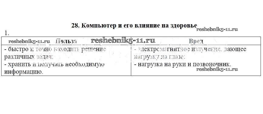 Готовая домашняя работа с ответами по ОБЖ за 6 класс Егорова Рабочая тетрадь Лицей 2012 ФГОС - 28. Компьютер и его влияние на здоровье 1