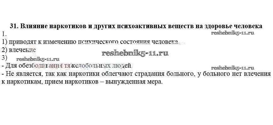 Готовая домашняя работа с ответами по ОБЖ за 6 класс Егорова Рабочая тетрадь Лицей 2012 ФГОС - 31. Влияние наркотиков и других психоактивных веществ на здоровье человека 1