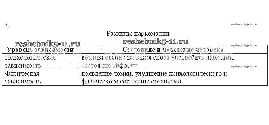 Готовая домашняя работа с ответами по ОБЖ за 6 класс Егорова Рабочая тетрадь Лицей 2012 ФГОС - 31. Влияние наркотиков и других психоактивных веществ на здоровье человека 4