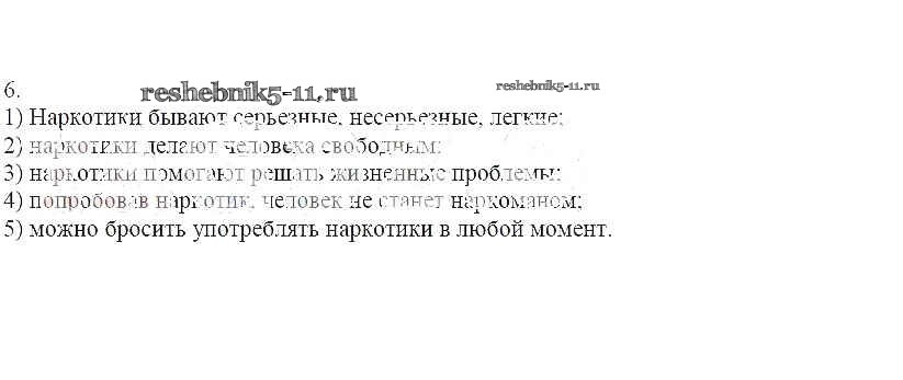 Готовая домашняя работа с ответами по ОБЖ за 6 класс Егорова Рабочая тетрадь Лицей 2012 ФГОС - 31. Влияние наркотиков и других психоактивных веществ на здоровье человека 6