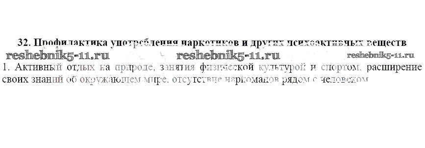 Готовая домашняя работа с ответами по ОБЖ за 6 класс Егорова Рабочая тетрадь Лицей 2012 ФГОС - 32. Профилактика употребления наркотиков и других психоактивных веществ 1