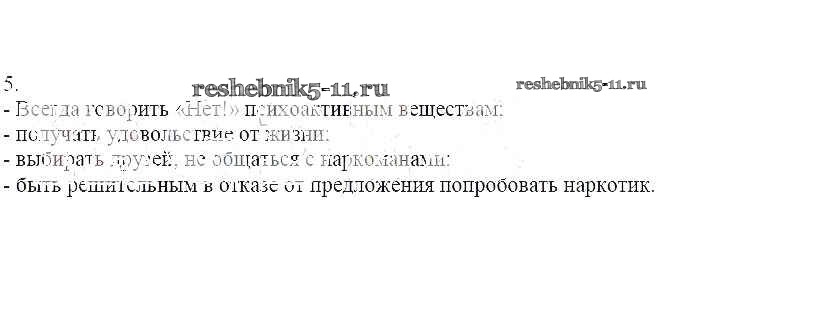 Готовая домашняя работа с ответами по ОБЖ за 6 класс Егорова Рабочая тетрадь Лицей 2012 ФГОС - 32. Профилактика употребления наркотиков и других психоактивных веществ 5
