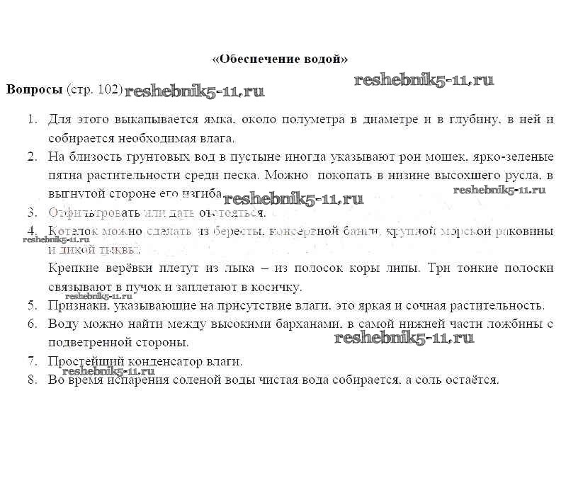 Готовая домашняя работа с ответами по ОБЖ за 6 класс Фролов, Шолох, Юрьева, Мишин Учебник Дрофа 2017 ФГОС - Страницы 102