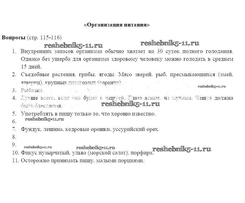 Готовая домашняя работа с ответами по ОБЖ за 6 класс Фролов, Шолох, Юрьева, Мишин Учебник Дрофа 2017 ФГОС - Страницы 115-116