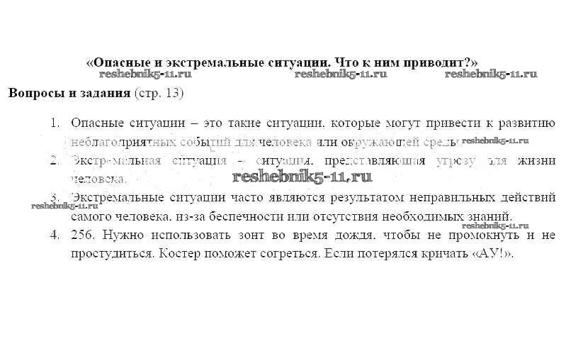 Готовая домашняя работа с ответами по ОБЖ за 6 класс Фролов, Шолох, Юрьева, Мишин Учебник Дрофа 2017 ФГОС - Страницы 13