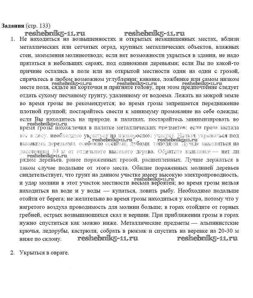 Готовая домашняя работа с ответами по ОБЖ за 6 класс Фролов, Шолох, Юрьева, Мишин Учебник Дрофа 2017 ФГОС - Страницы 133