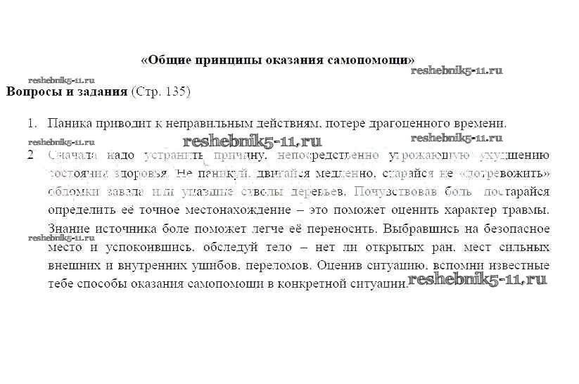 Готовая домашняя работа с ответами по ОБЖ за 6 класс Фролов, Шолох, Юрьева, Мишин Учебник Дрофа 2017 ФГОС - Страницы 135