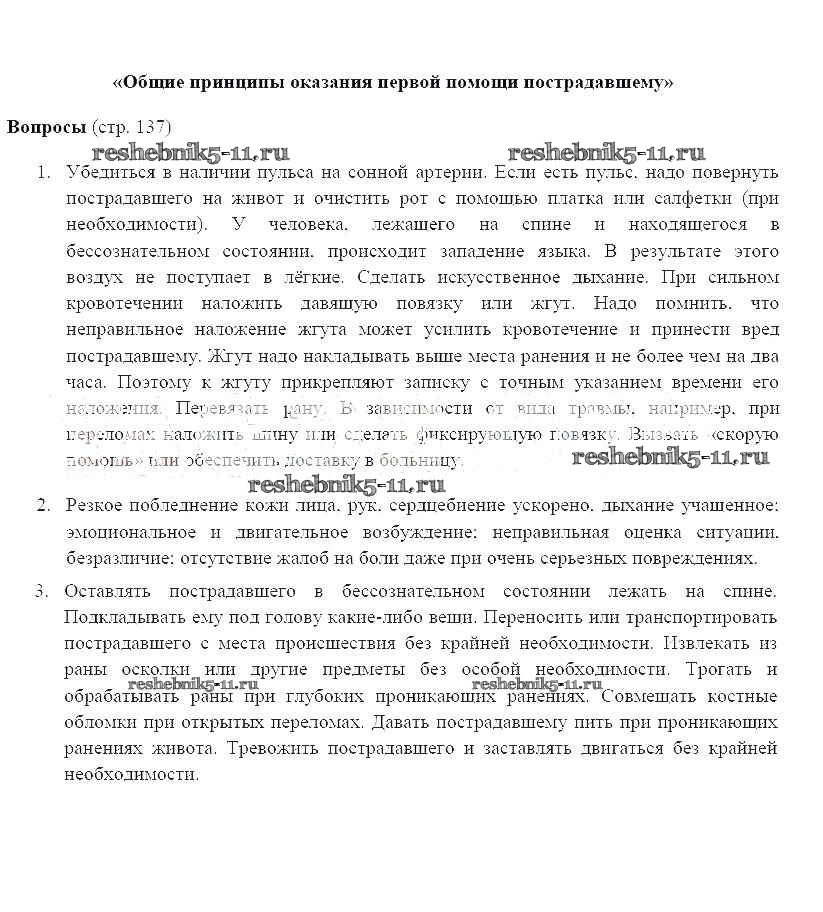 Готовая домашняя работа с ответами по ОБЖ за 6 класс Фролов, Шолох, Юрьева, Мишин Учебник Дрофа 2017 ФГОС - Страницы 137