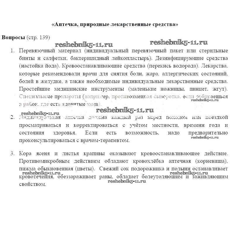 Готовая домашняя работа с ответами по ОБЖ за 6 класс Фролов, Шолох, Юрьева, Мишин Учебник Дрофа 2017 ФГОС - Страницы 139