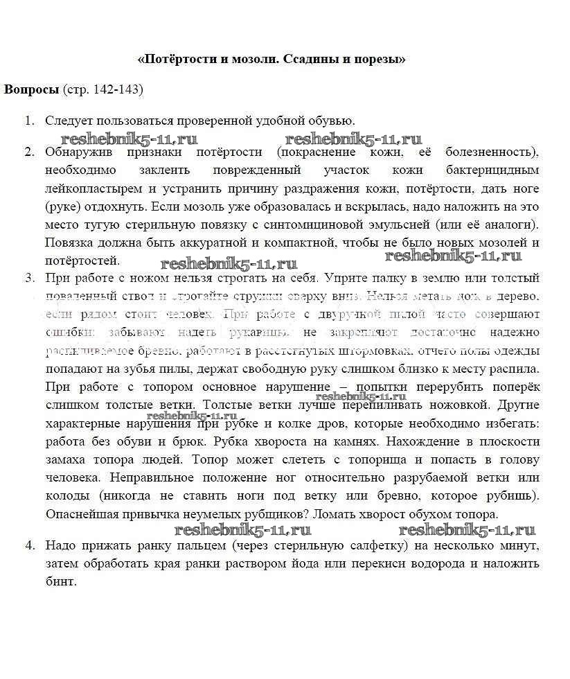 Готовая домашняя работа с ответами по ОБЖ за 6 класс Фролов, Шолох, Юрьева, Мишин Учебник Дрофа 2017 ФГОС - Страницы 142-143